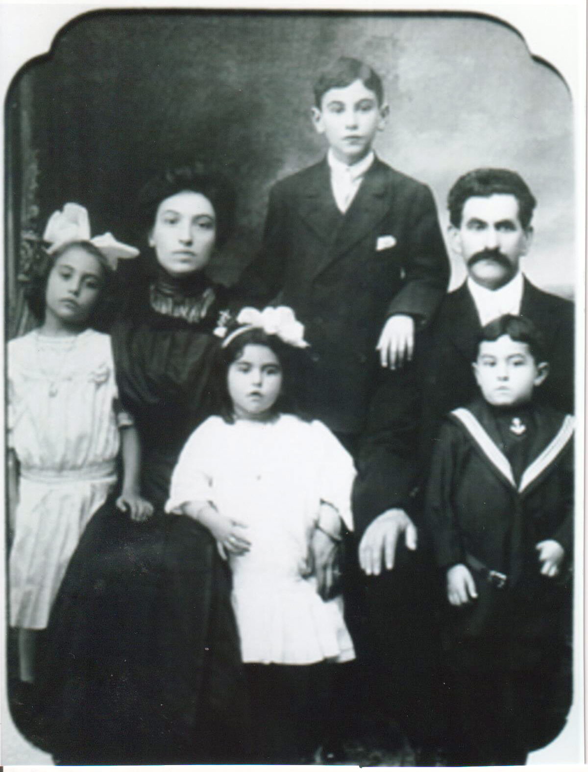 Bella (daughter, left), Gertrude (mother), Celia (daughter, front), Martin (son, back), Eli (father), and Benjamin (son, front)