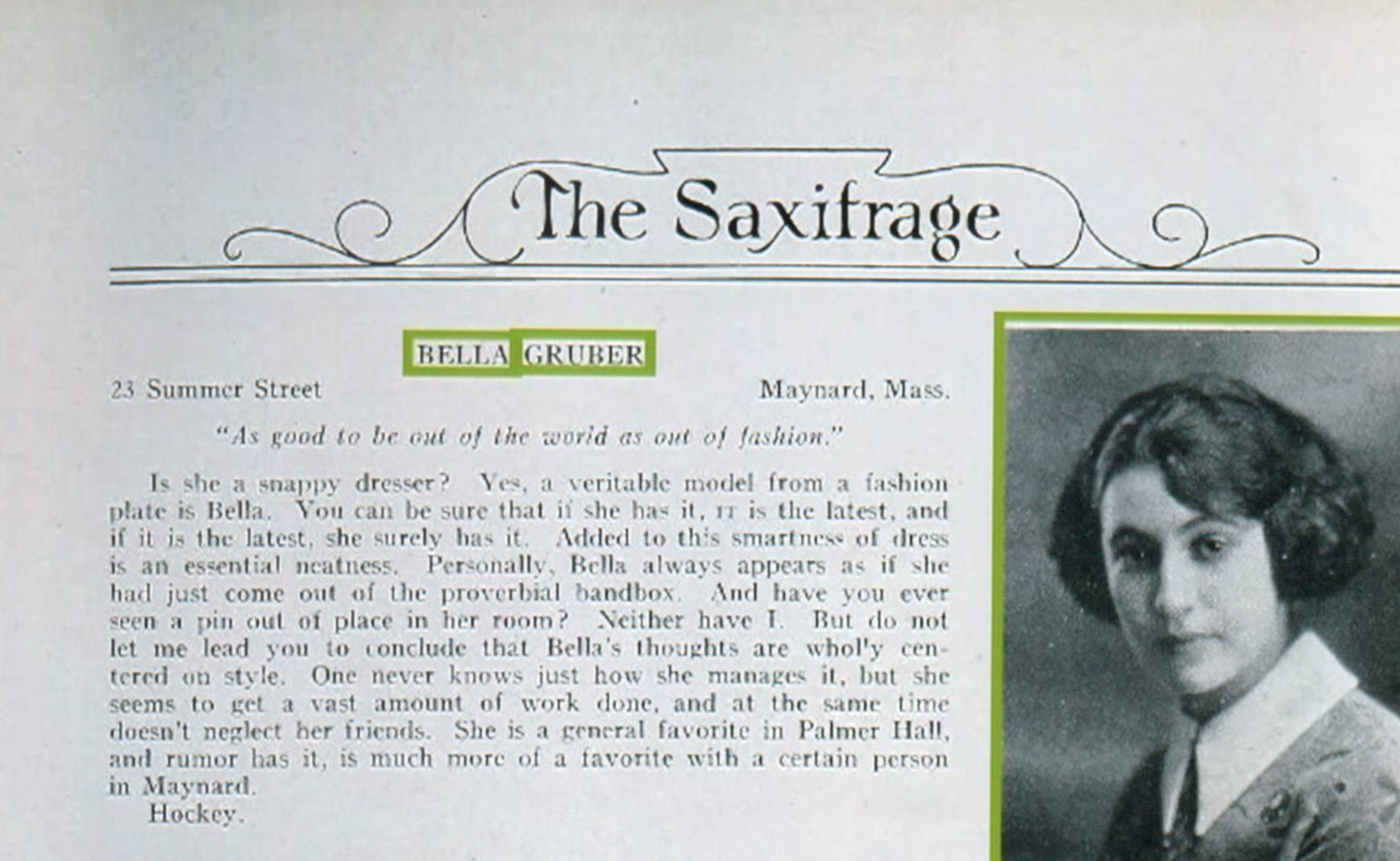 1) Bella Gruber - MHS Class of 1922