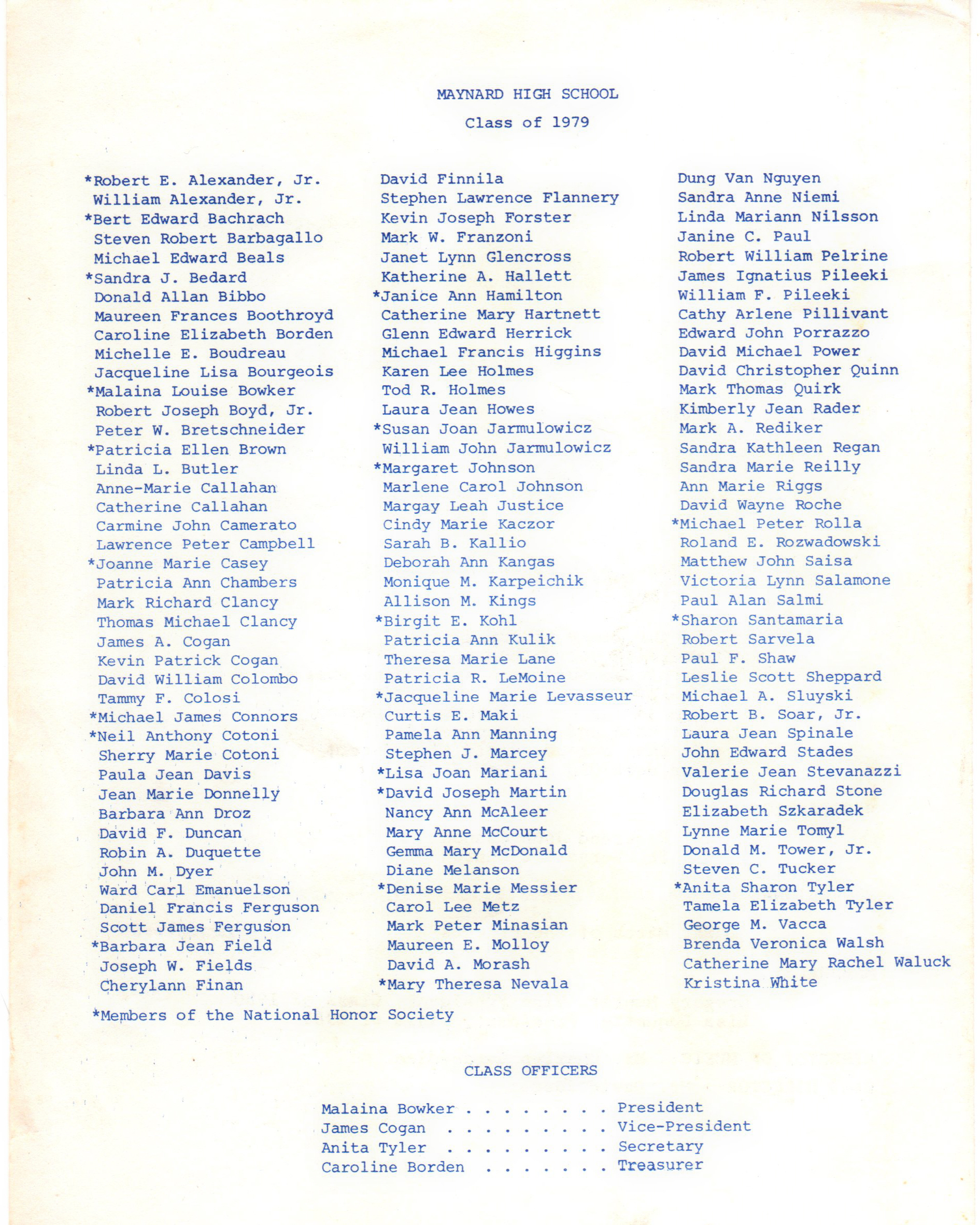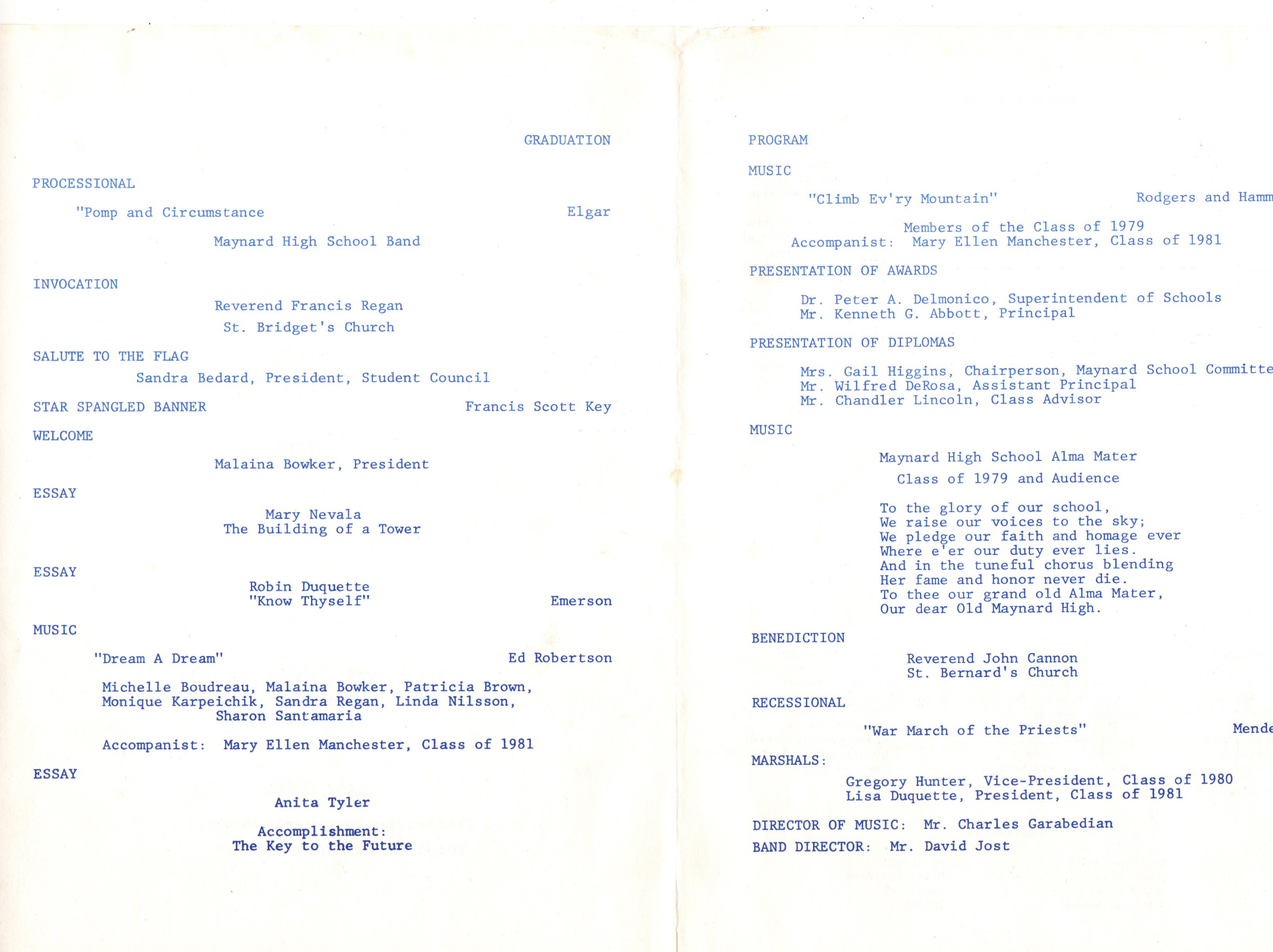 Maynard High School Class of 1979 Graduation Program
