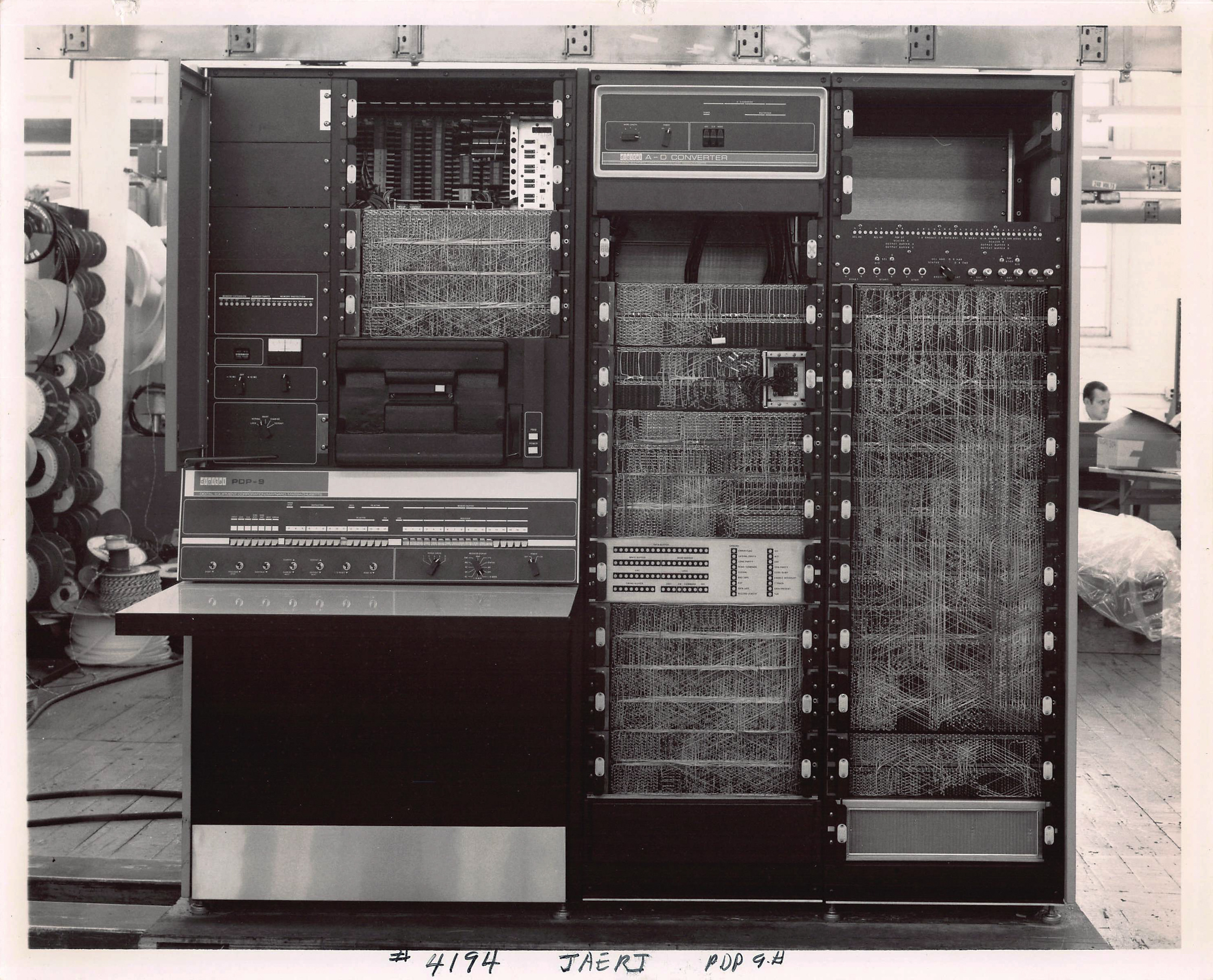 A Digital Equipment Corporation PDP-9 being manufactured/tested within a lab in the Mill complex.