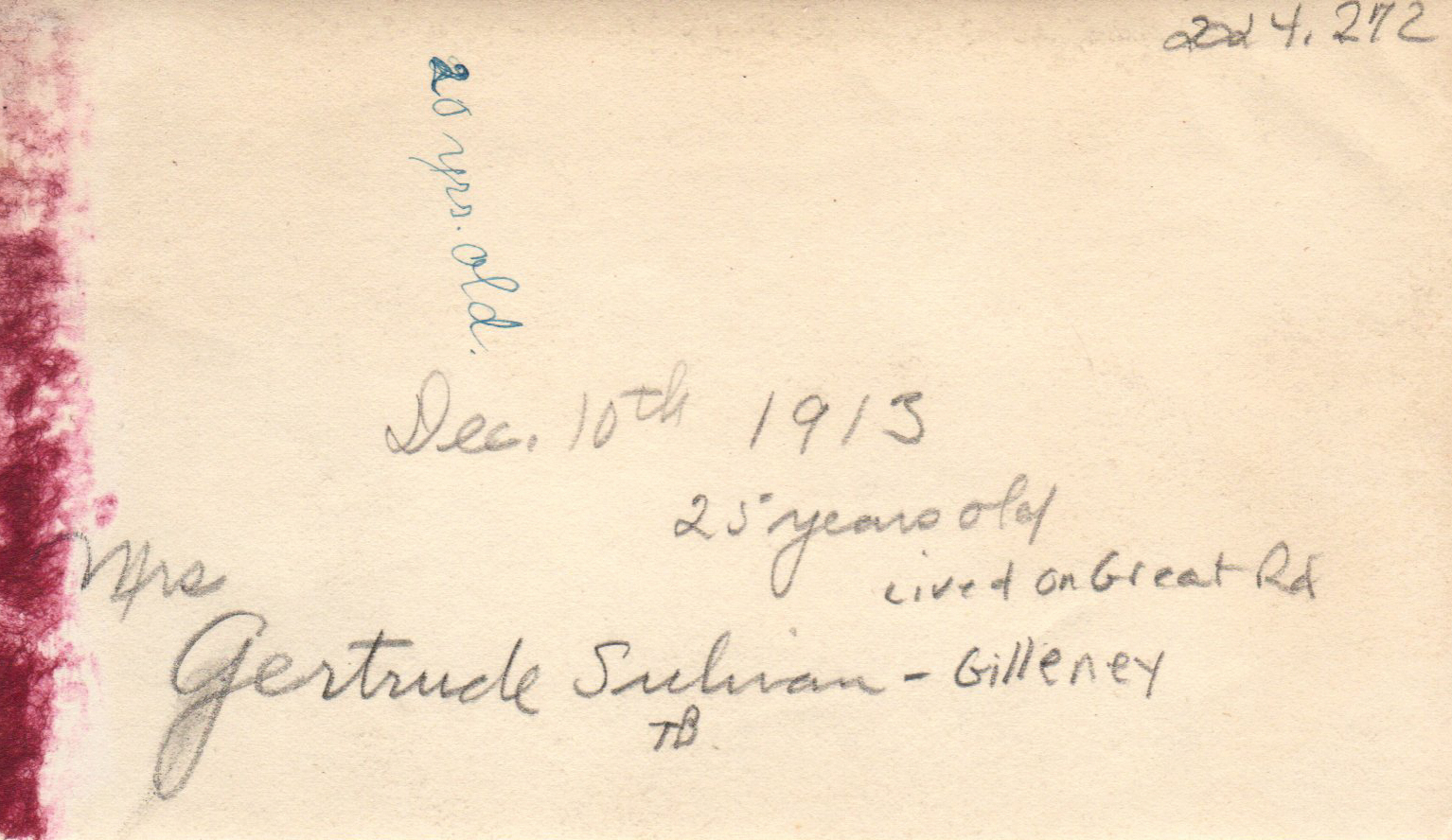Gertrude Gilleney Sullivan married Daniel Sullivan June 22, 1910.